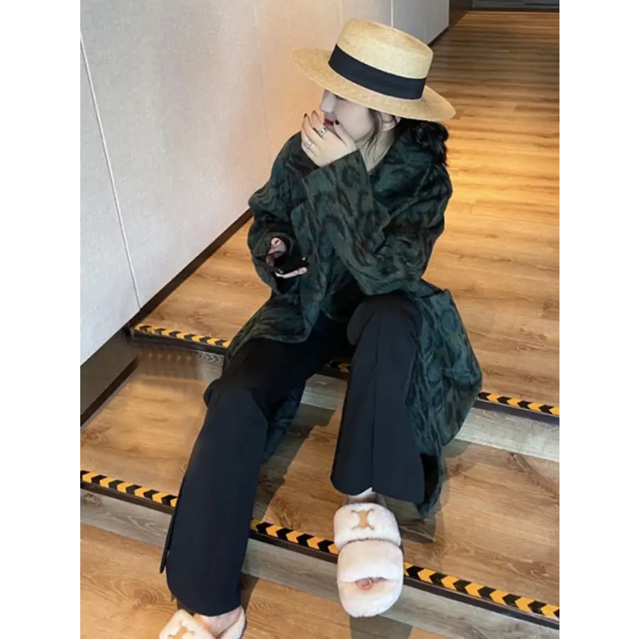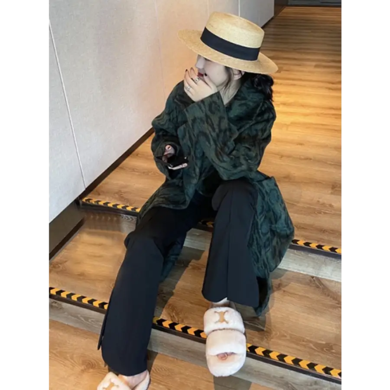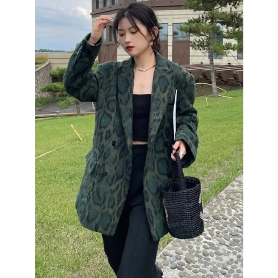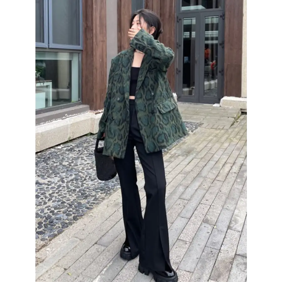 Affirmez votre style avec ce blazer ample à motif léopard vert. Véritable pièce maîtresse, il se distingue par son confort et son élégance. Idéal pour jouer sur les superpositions, il arbore des manches longues et des boutons sur le devant, lui conférant un look de costume subtil. Portez-le par-dessus un crop top et un pantalon taille haute pour une tenue à la fois sophistiquée et décontractée.