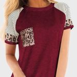 Notre tee-shirt à poche léopard bordeaux se portera facilement avec un jean basique pour un look casual. Col rond, manches courtes rayées style marinière et détail motif léopard marron sur les manches et sur la poche. Tee-shirt long.