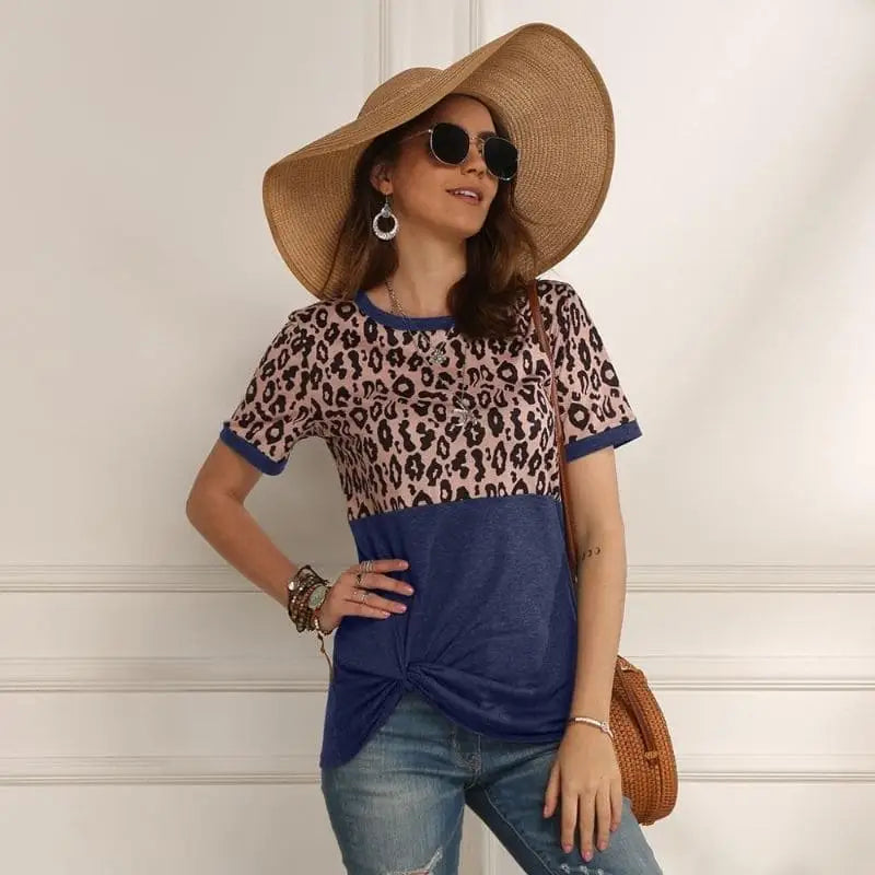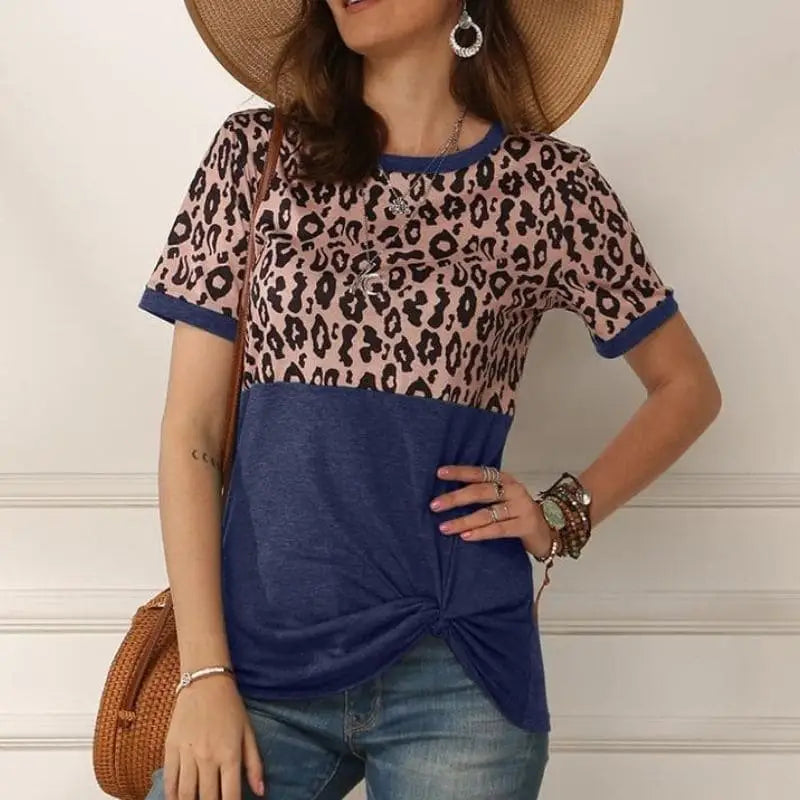 T-Shirt pour femme motif léopard tendance bleu