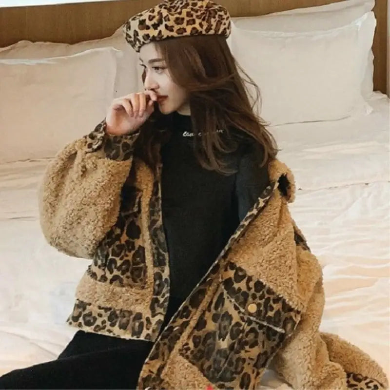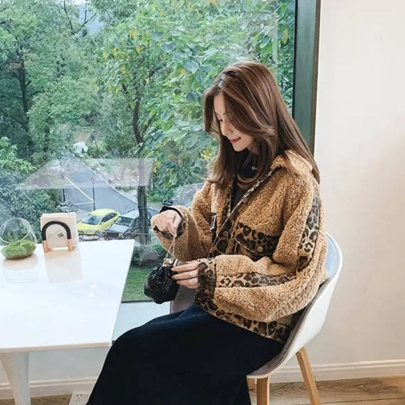 Veste léopard en imitation fourrure douillette